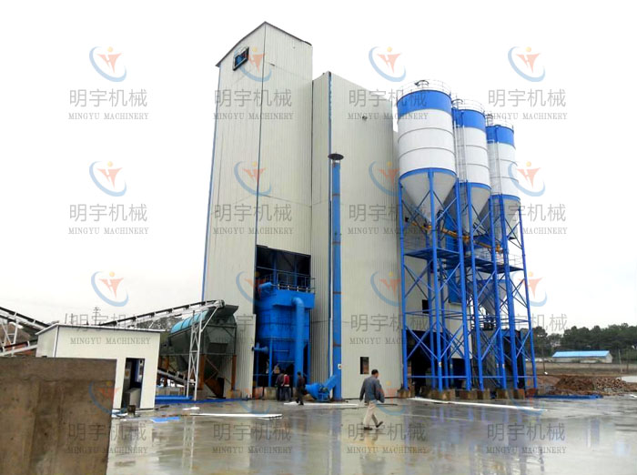 大型预拌砂浆生产线,主要由原料储存仓、配料系统、待混仓、2-6立方主混合机、原料储存仓、输送机、电脑自动计量包装机(适应于阀口袋)、电控系统等组成。适应于普通干混砌筑砂浆的生产(如:抹灰砂浆、砌筑砂浆地坪砂浆、装饰砂浆、防水砂浆等)。混合机内胆和机件全部采用专用耐磨材料制造,耐磨性特别强,使用寿命长,具有国内同类产品不可比拟的优越性,在同行业中占据地位。整套设备性能稳定,物料混合均匀,具有能耗低、投资少、见效快、占地小、操作简单等诸多优点,5-8人即可操作,每次可以混合砂浆4-6吨,每小时可生产20-40吨左右。